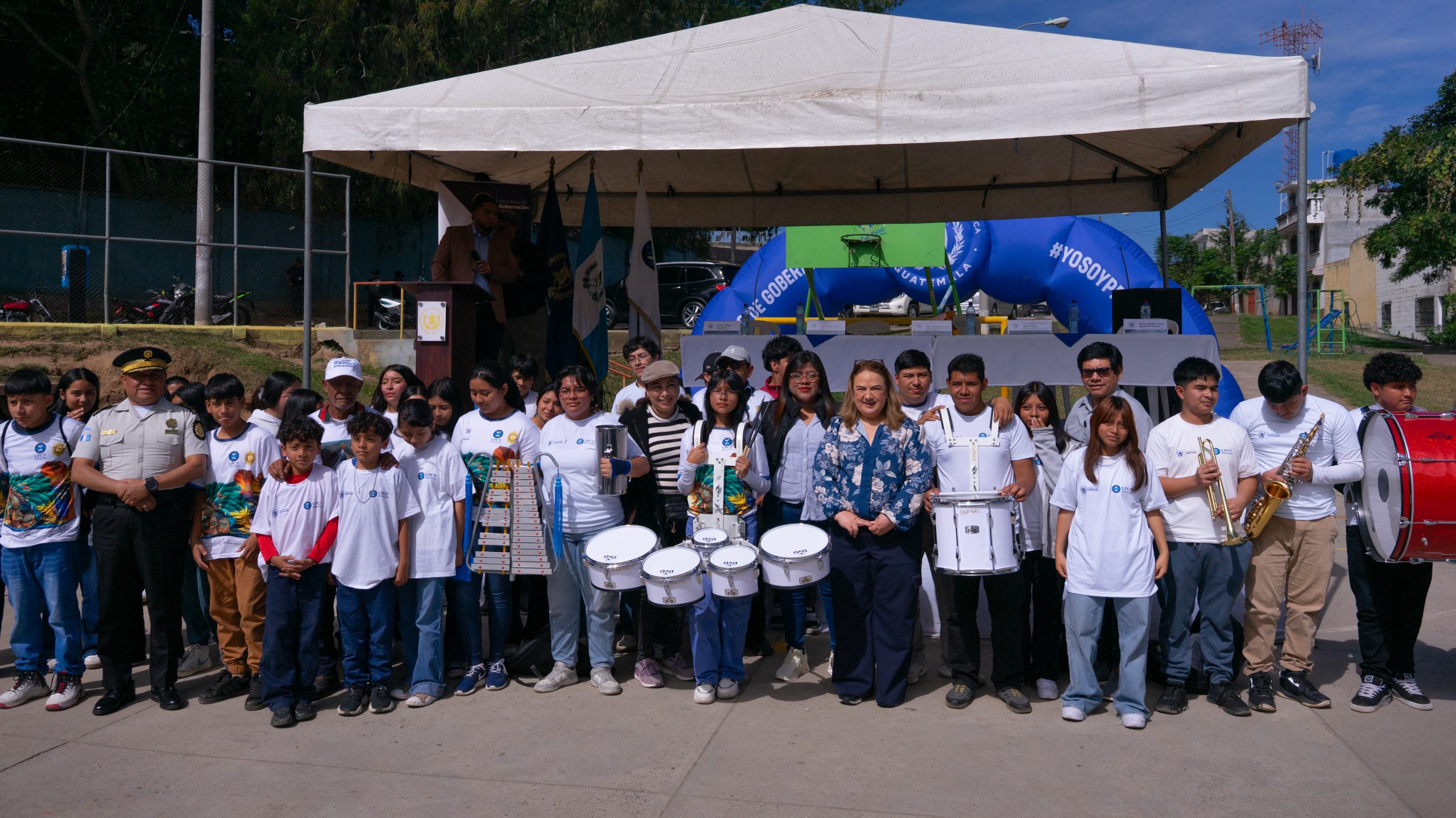 Como parte de la jornada “Un Día con Mi Comunidad”, el Tercer Viceministerio de Gobernación, a través de la Unidad para la Prevención Comunitaria de la Violencia (UPCV) y la Subdirección General de Prevención del Delito, realizó la develación de murales comunitarios y la entrega de instrumentos musicales a la Banda Comunitaria de Música de zona 18 en la colonia Las Ilusiones.